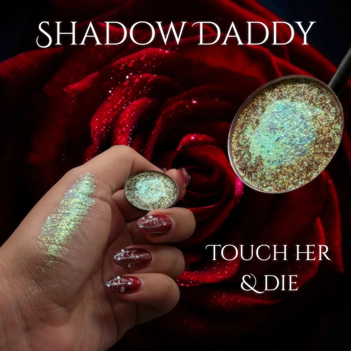 Touch Her & Die - embodies the fierce, possessive fury and undeniable danger of the Shadow Daddy's protective wrath. This shade is a brilliant multi-shifting chrome with a dominant green-blue and gold flash, set against a darker base of molten gold.